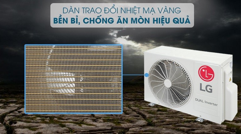 Máy điều hòa LG B24END1 Inveter được sử dụng đồng nguyên chất, cánh tản nhiệt mạ vàng không chỉ giúp điều hòa chống lại sự ăn mòn của các tác nhân môi trường bên ngoài như ( bụi bặm, nước mưa..) mà còn giúp tăng hiệu suất làm lạnh vượt trội.